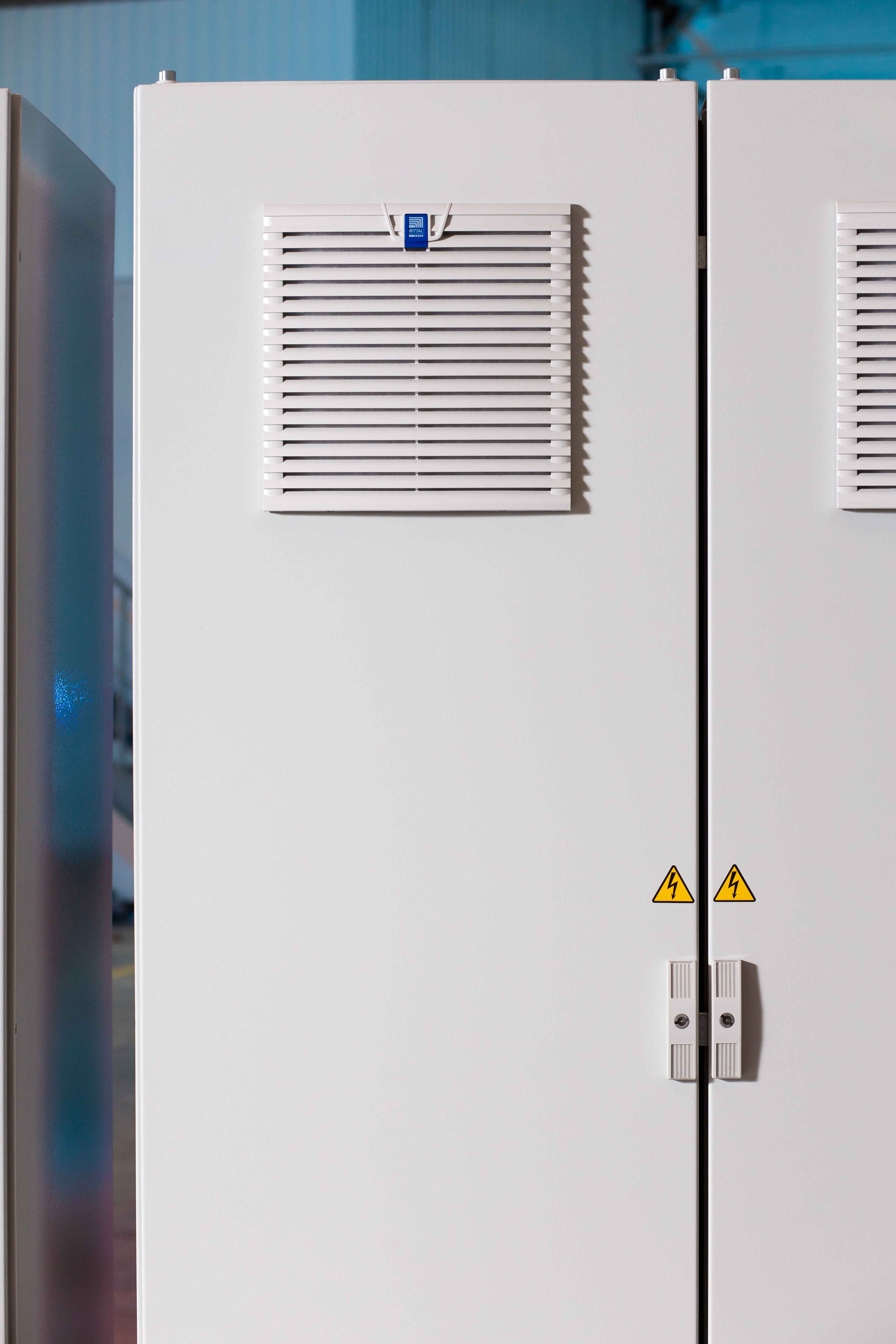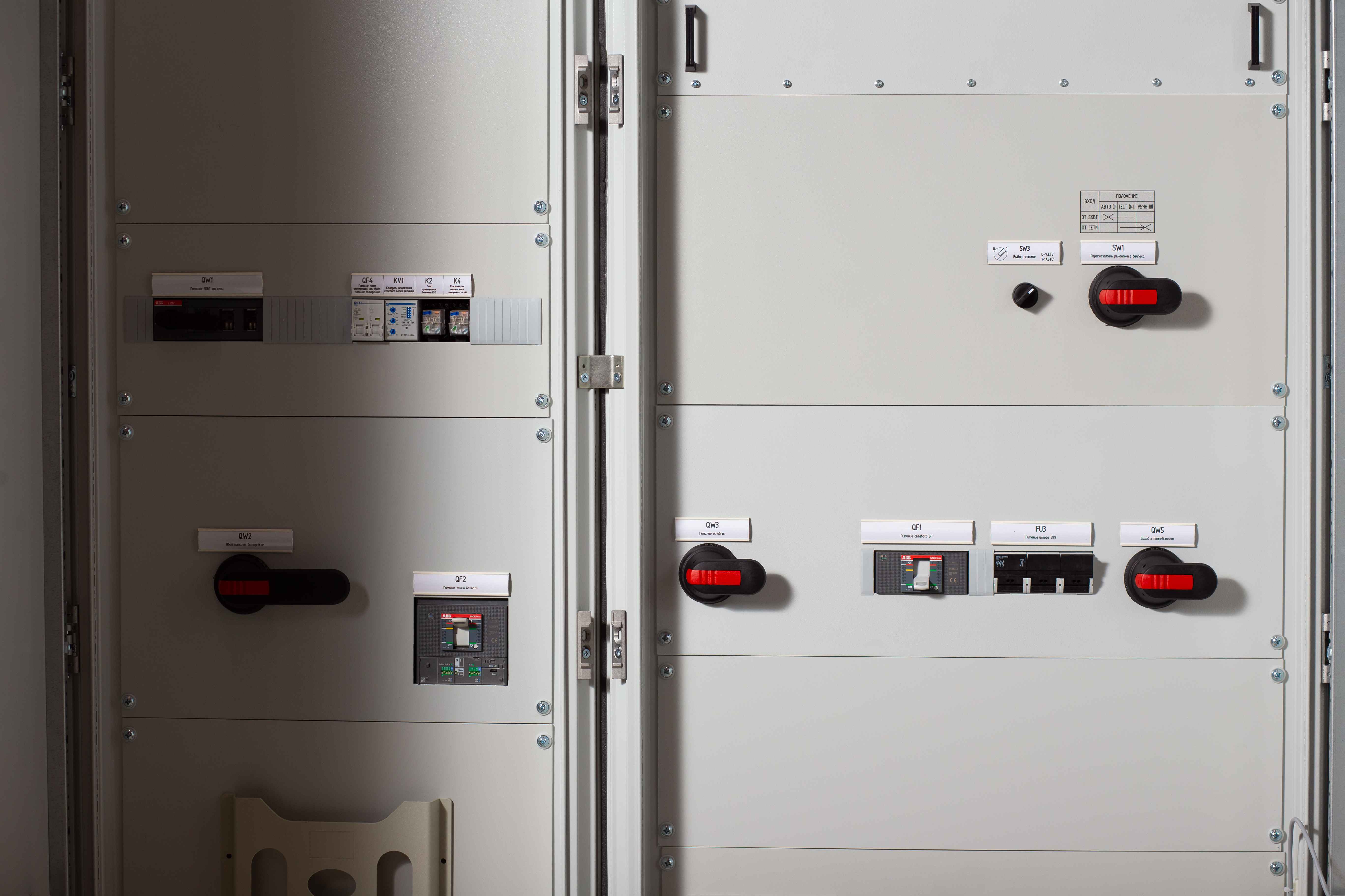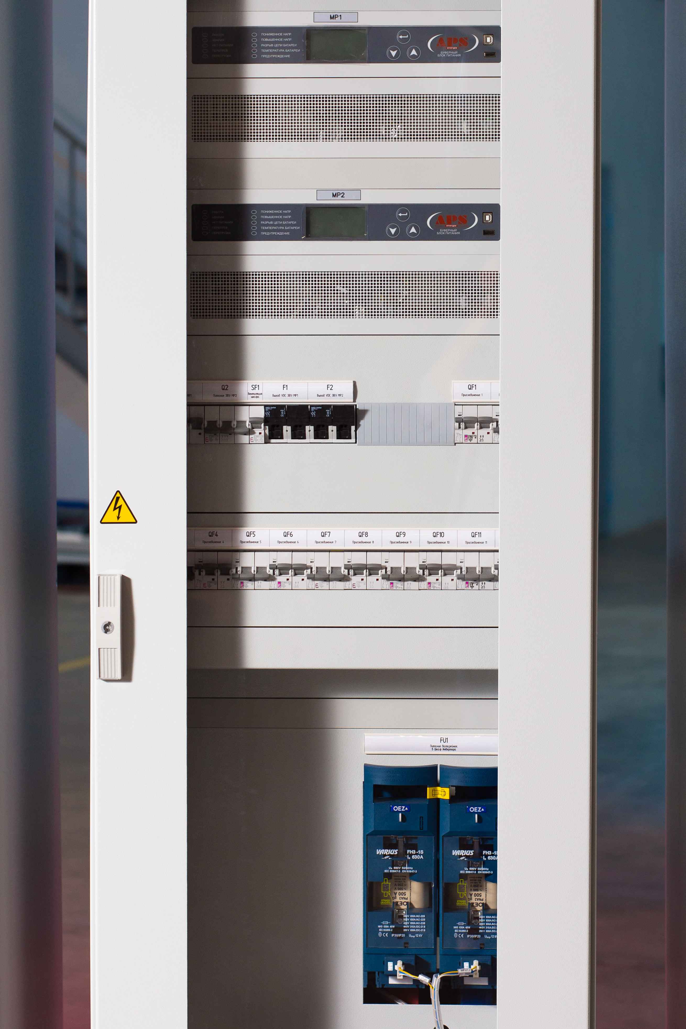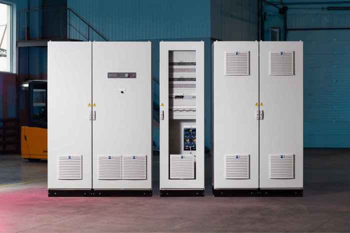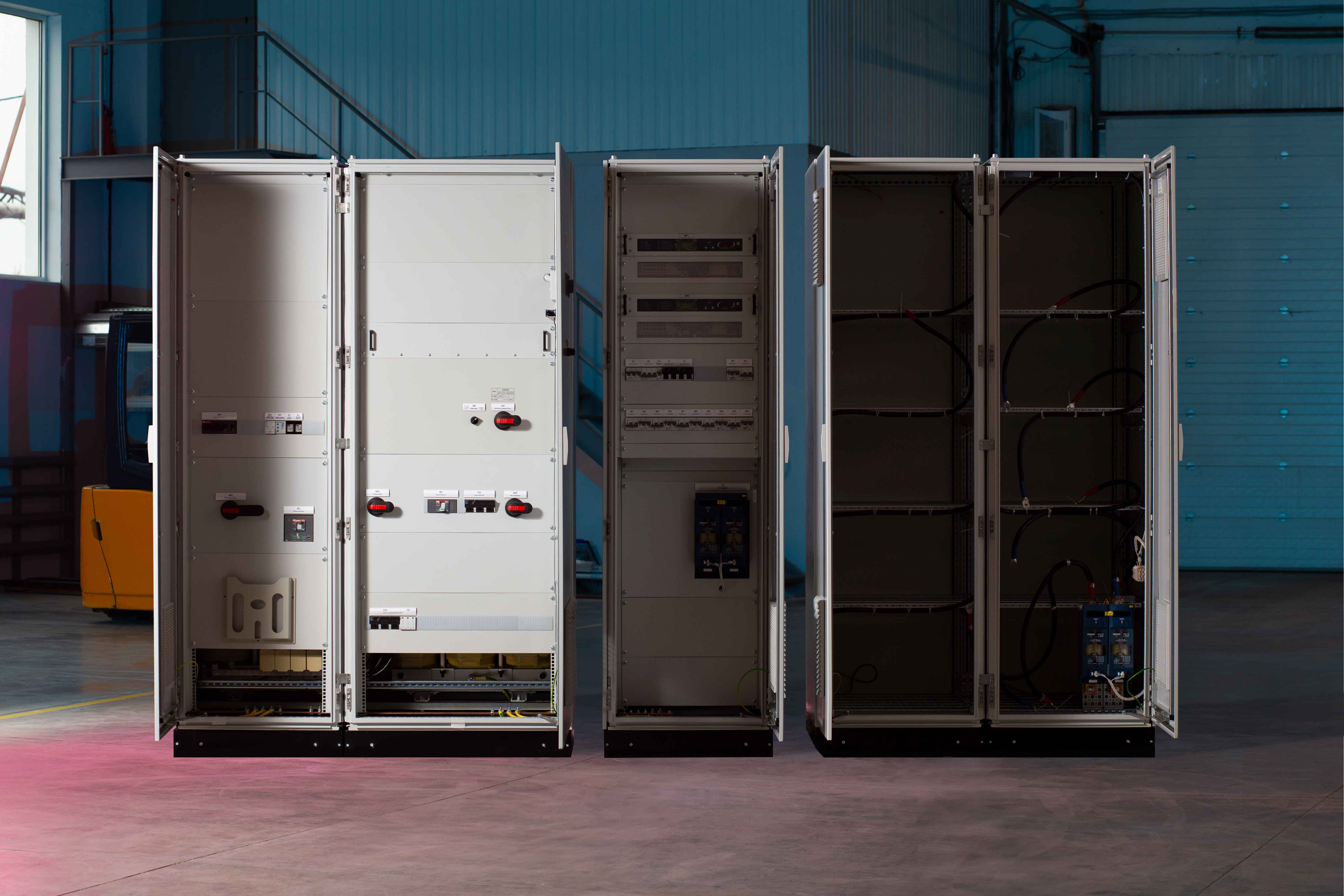 Система бесперебойного питания является функционально законченным устройством, компоненты которого, построенные на базе высокочастотных транзисторных преобразователей напряжения и выполненных по технологии IGBT с микропроцессорным контролем и управлением (контроллер DSP), размещены в шкафах промышленного исполнения:- для напольного либо навесного монтажа