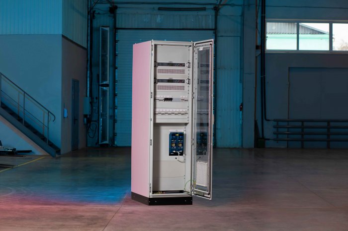 - с модульным либо распределённым монтажом компонентов в шкафу