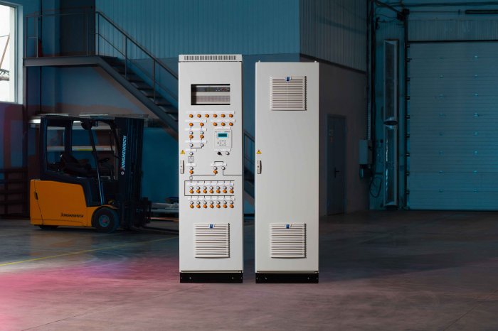 ШОТ представляет собой НКУ, состоящее из одного или более шкафов (панелей) с установленными внутри модулями преобразователей AC/DC, аккумуляторами, аппаратами распределения, аппаратурой сигнализации, измерения и мониторинга параметров. Другими словами, ШОТ – это компактная система оперативного постоянного тока (СОПТ), объединенная в единый конструктив.Область применения: