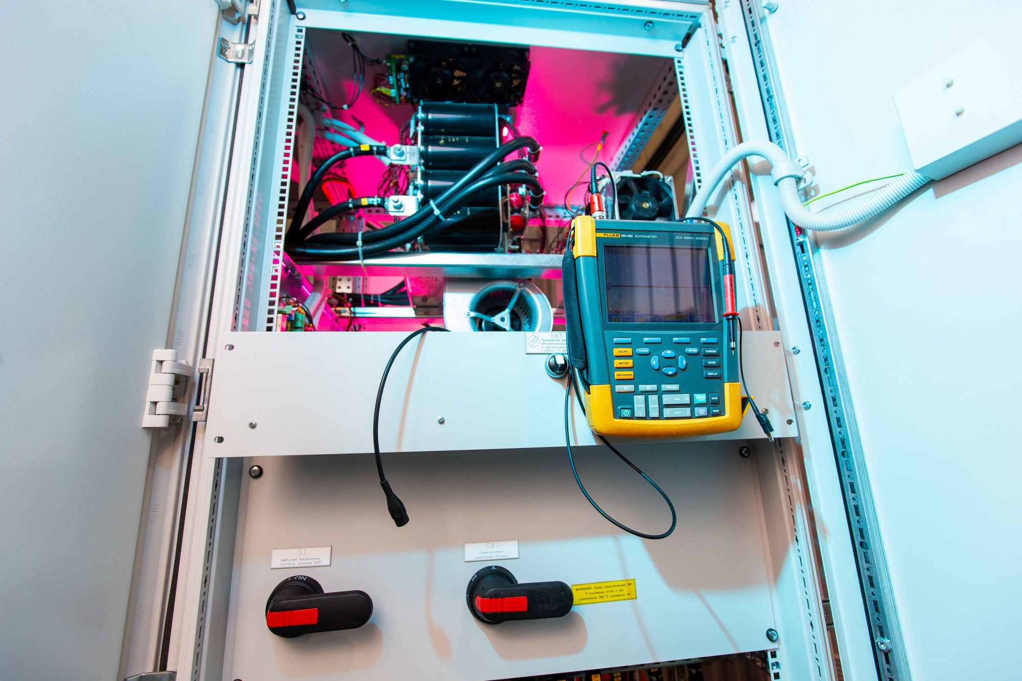 • Замеры выходных параметров инвертора, тестирование режимов работы (on-line, off-line), проверка корректности алгоритмов работы инвертора при отклонении от нормы входных параметров (ток, напряжение, частота, срабатывание аварийных сигналов), контроль установленных порогов сигнализации предупреждений и тревог на соответствие документации производителя (или требованиям Заказчика)